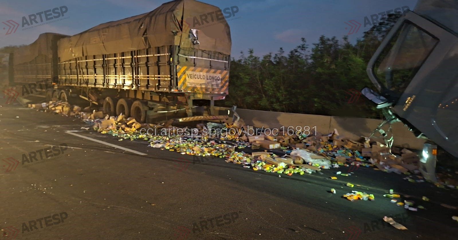 O choque espalhou parte da carga de medicamentos sobre a pista, exigindo a presença do responsável pelo material e da seguradora para iniciar o transbordo. Viaturas da Polícia Rodoviária e da concessionária AUTOBAN foram acionadas para atender à ocorrência.