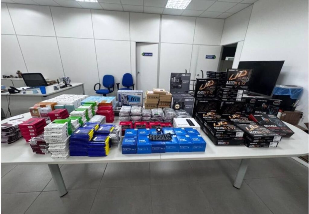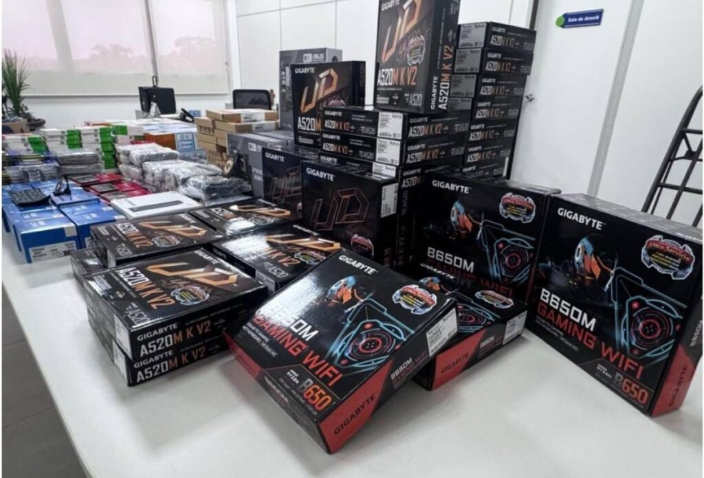 A carga, composta por cinco volumes, foi localizada em uma transportadora na cidade, após sair na noite de terça-feira (21) de São José do Rio Preto, a cerca de 200 quilômetros de Ribeirão Preto. A maioria dos itens era composta por produtos de informática, incluindo placas-mãe, placas de vídeo, SSDs, memórias DDR e HDs, todos de origem estrangeira sem comprovação legal.
