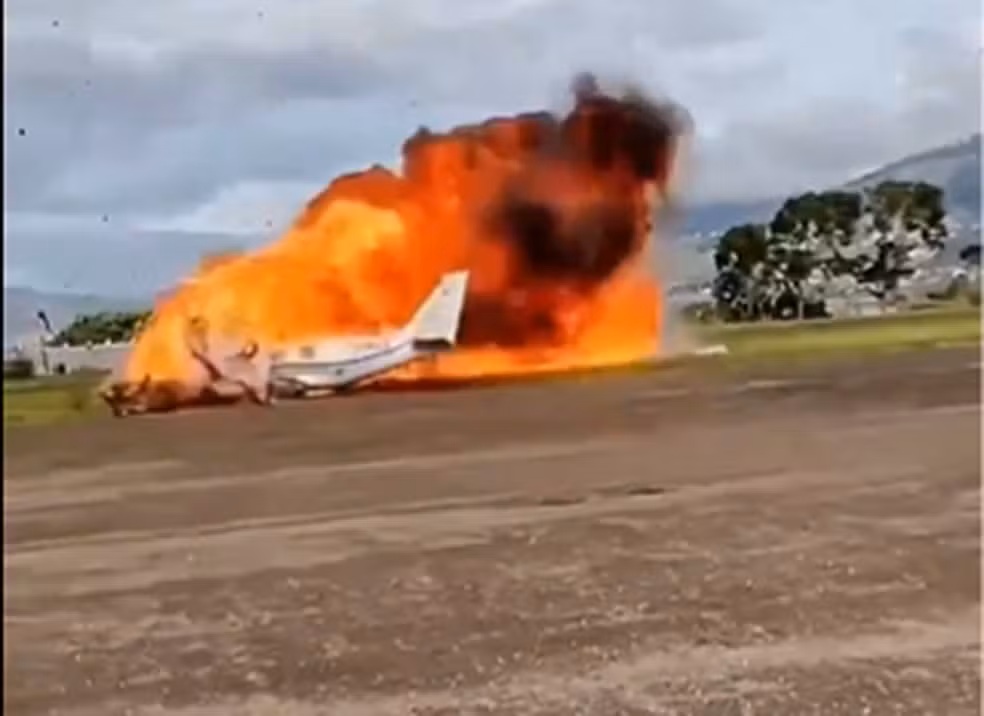 Um avião de pequeno porte caiu nesta quarta-feira (22) logo após tentar decolar no aeroporto da cidade de São Cristóbal, na Venezuela. O piloto e o copiloto morreram no local, e não havia passageiros a bordo da aeronave.