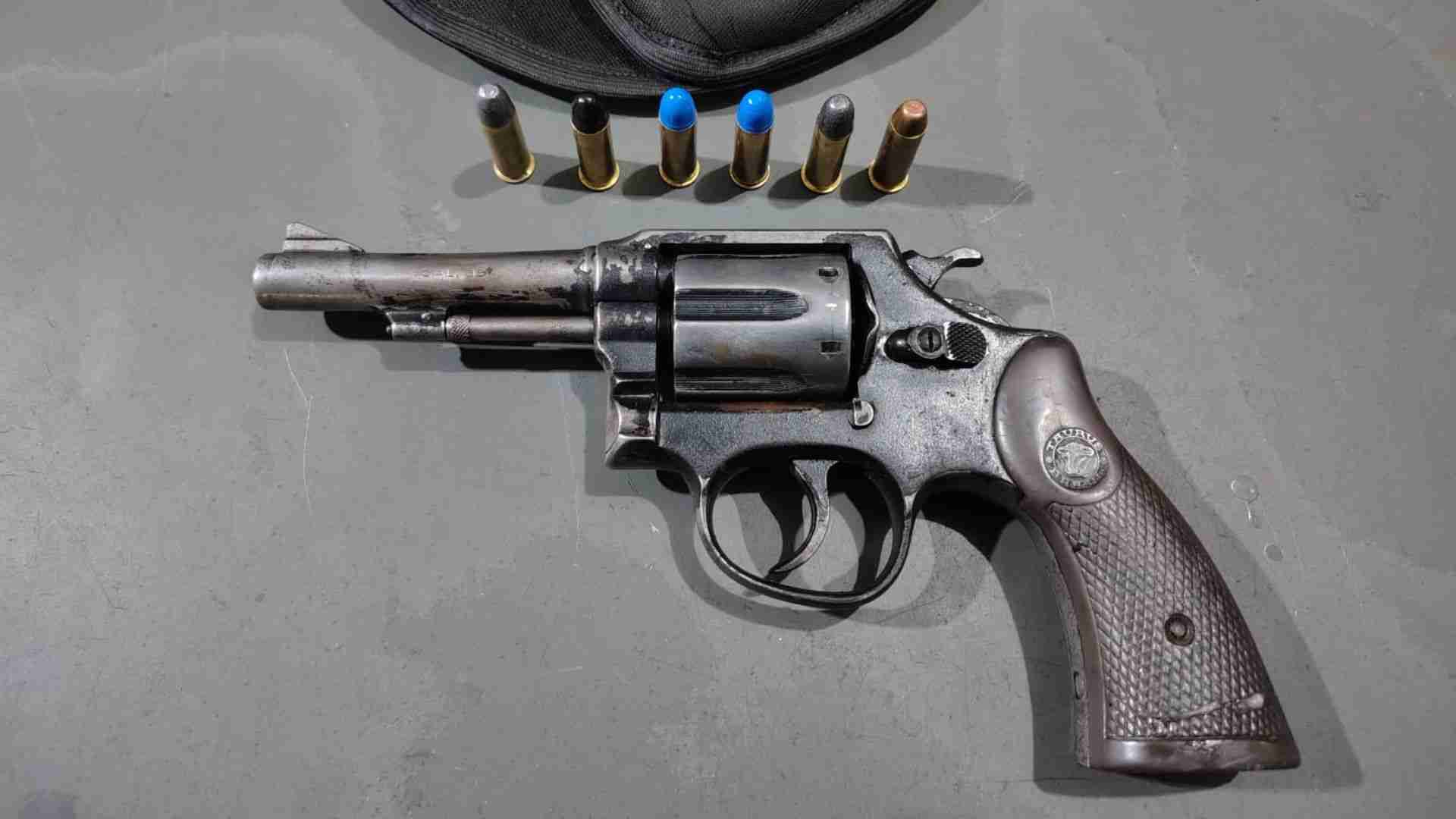 Diante da atitude suspeita, os policiais realizaram a abordagem. Na busca pessoal, foi localizado um revólver na cintura de um dos indivíduos. Nada de ilícito foi encontrado com o segundo.