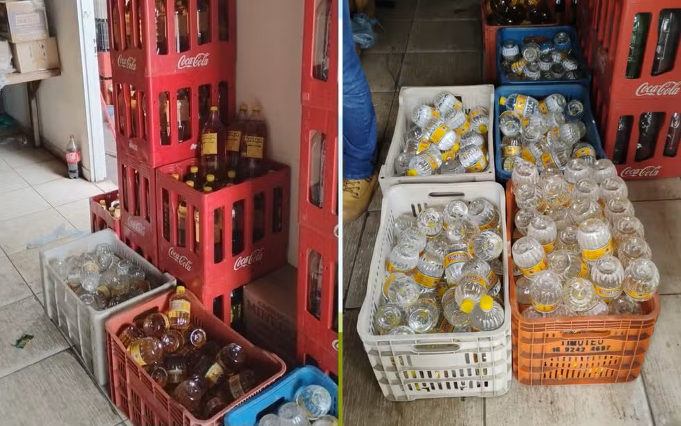 De acordo com as investigações, o suspeito comprava garrafas retornáveis de moradores de rua, lavava as embalagens e as reutilizava para envasar uma mistura de álcool e corante, simulando cachaça. A bebida era armazenada e comercializada sem qualquer controle de qualidade e sem autorização dos órgãos competentes.