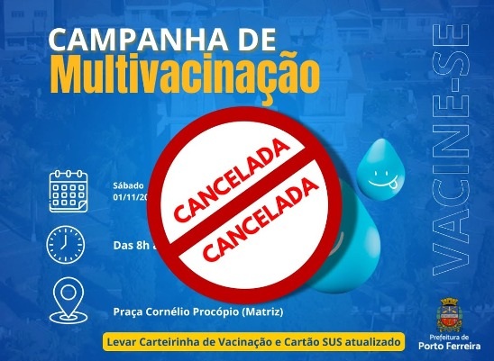 A Prefeitura de Porto Ferreira, por meio da Secretaria Municipal de Saúde, anunciou a mudança de data do encerramento da Campanha de Multivacinação de 2025. O evento, que estava programado para este sábado, 1º de novembro, na Praça Cornélio Procópio (Praça da Matriz), foi transferido para o dia 6 de dezembro.