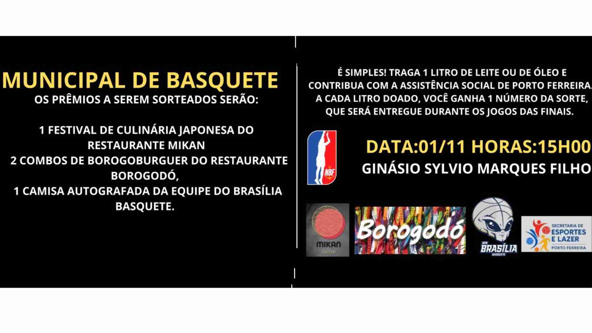 A Prefeitura de Porto Ferreira, por meio da Secretaria de Esportes e Lazer, realiza neste sábado (1º/11), a grande final do Campeonato Municipal de Basquete 2025, no Ginásio Sylvio Marques Filho, no Jardim Primavera, a partir das 15h.