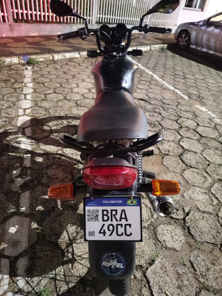 Por volta das 21h15, os policiais abordaram um homem que conduzia uma motocicleta preta, aparentemente modelo Honda CG, cuja placa levantou suspeitas de falsificação. A fiscalização também revelou que o condutor não possuía carteira de habilitação.