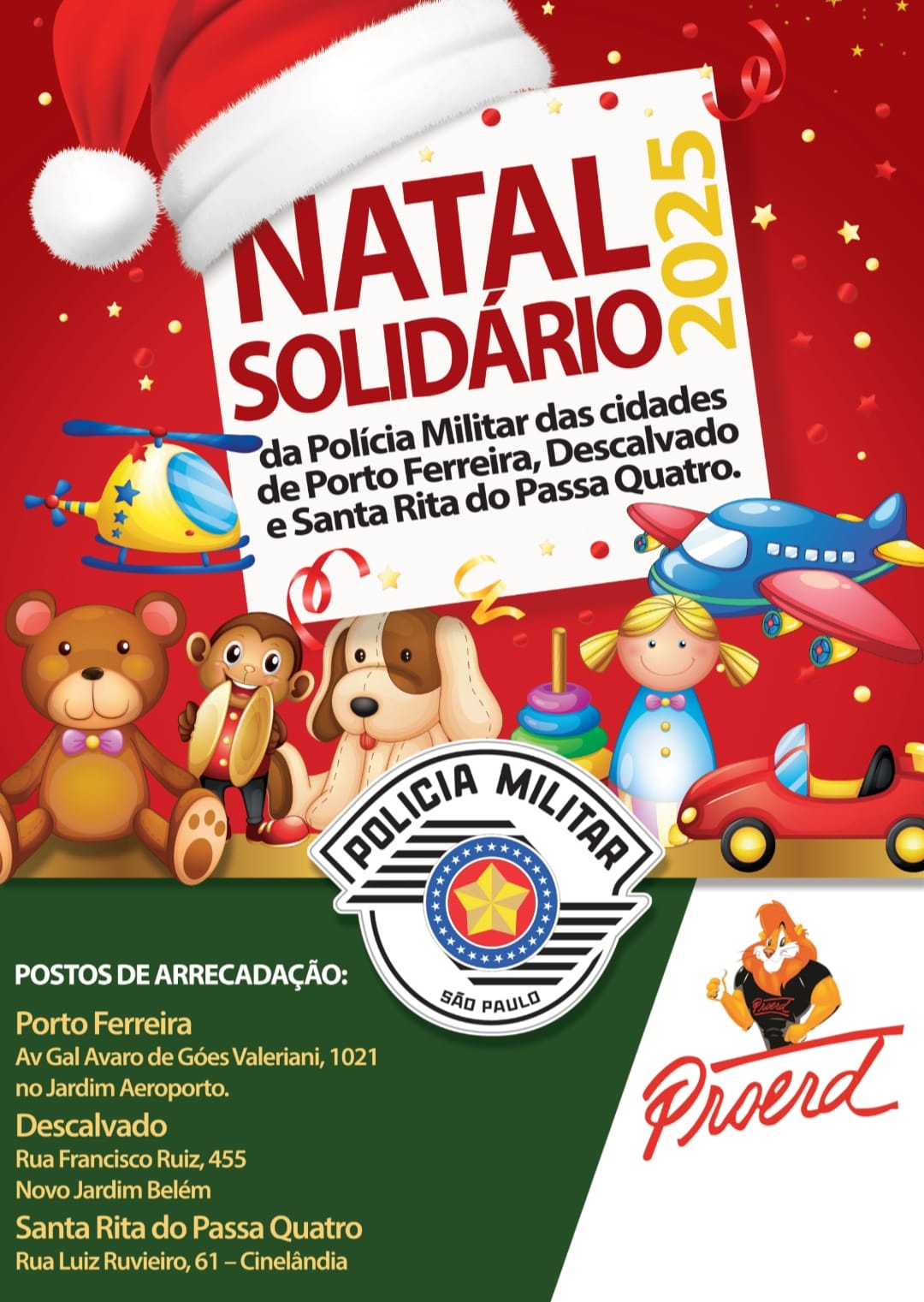 A Polícia Militar de Porto Ferreira, Descalvado e Santa Rita do Passa Quatro realiza mais uma edição da campanha Natal Solidário 2025, que busca levar alegria e esperança para crianças em situação de vulnerabilidade social.