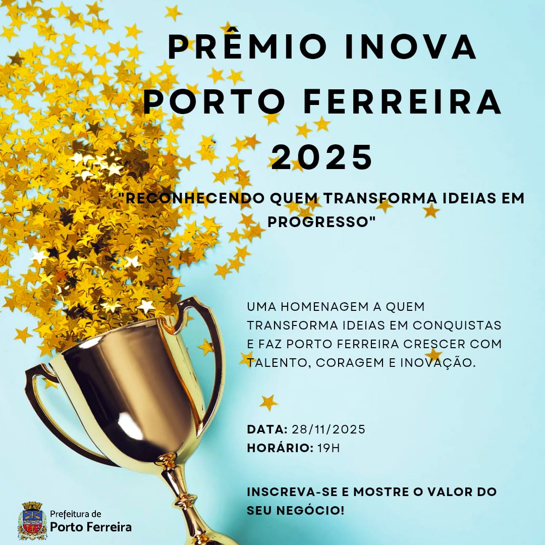A Prefeitura de Porto Ferreira, por meio da Secretaria de Desenvolvimento Econômico e Turismo, abriu inscrições para o Prêmio Inova Porto Ferreira 2025. A iniciativa faz parte da Semana do Empreendedor e tem como objetivo valorizar empresas que se destacaram ao longo do ano, estimulando a inovação, a criatividade e o impacto positivo no município.