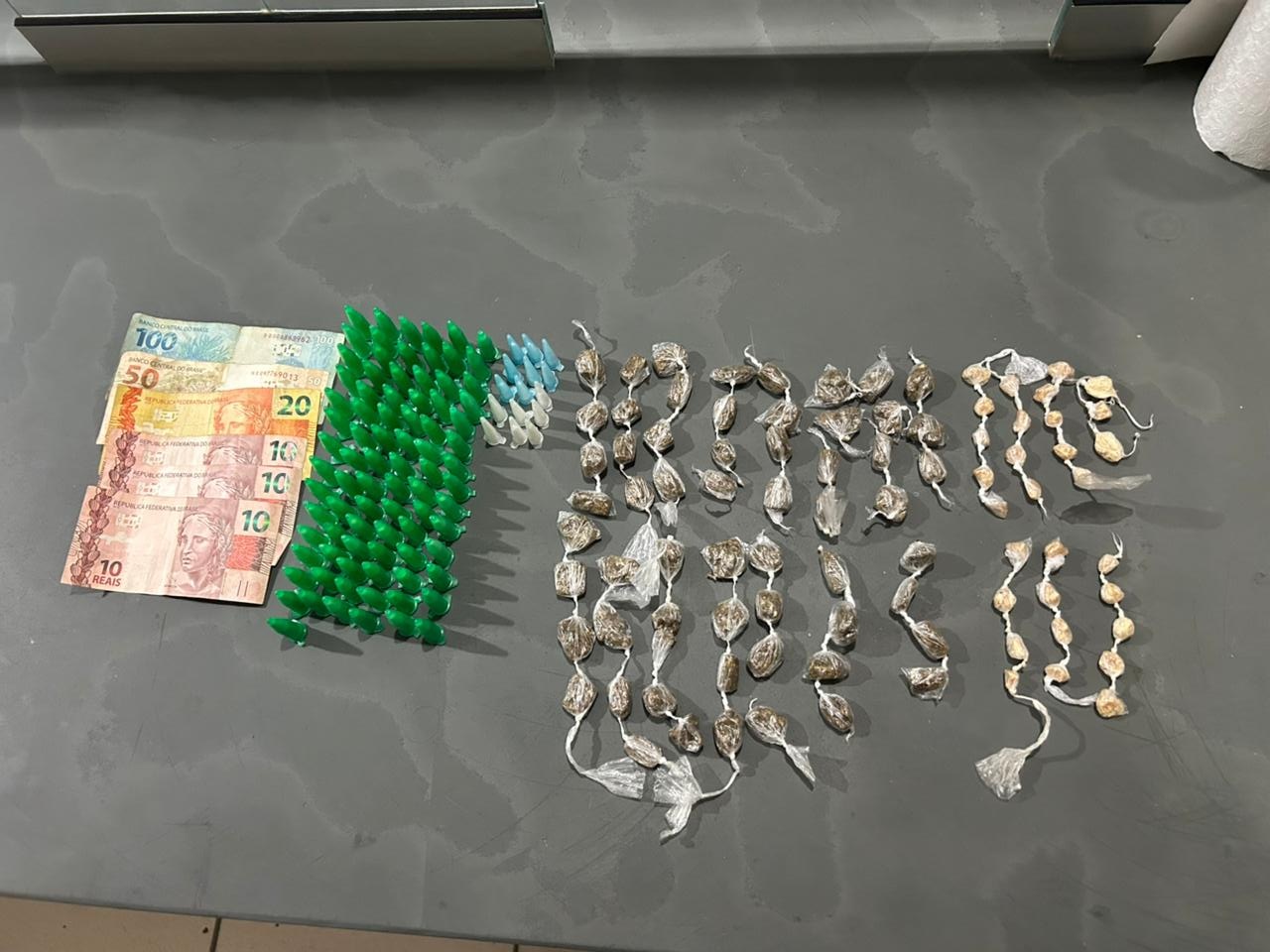 Segundo a corporação, os policiais avistaram o suspeito que, ao notar a aproximação da viatura, tentou se desfazer de uma sacola e seguir em direção a um bar. Ele foi abordado e, durante a revista pessoal, foram encontrados R$ 200 em dinheiro.