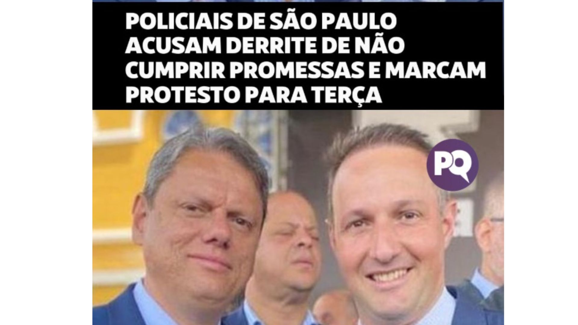 Vinte e duas entidades que representam as categorias das Polícias Civil e Militar de São Paulo marcaram um protesto contra a gestão do governador Tarcísio de Freitas (Republicanos) e do secretário da Segurança Pública licenciado, Guilherme Derrite (PP). O ato está agendado para a próxima terça-feira, 18 de novembro, às 14h, no Largo São Francisco, na região central da capital.
