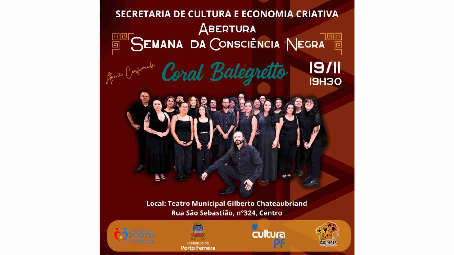 A Secretaria de Cultura e Economia Criativa de Porto Ferreira convida a todos para a abertura oficial da Semana da Consciência Negra.
