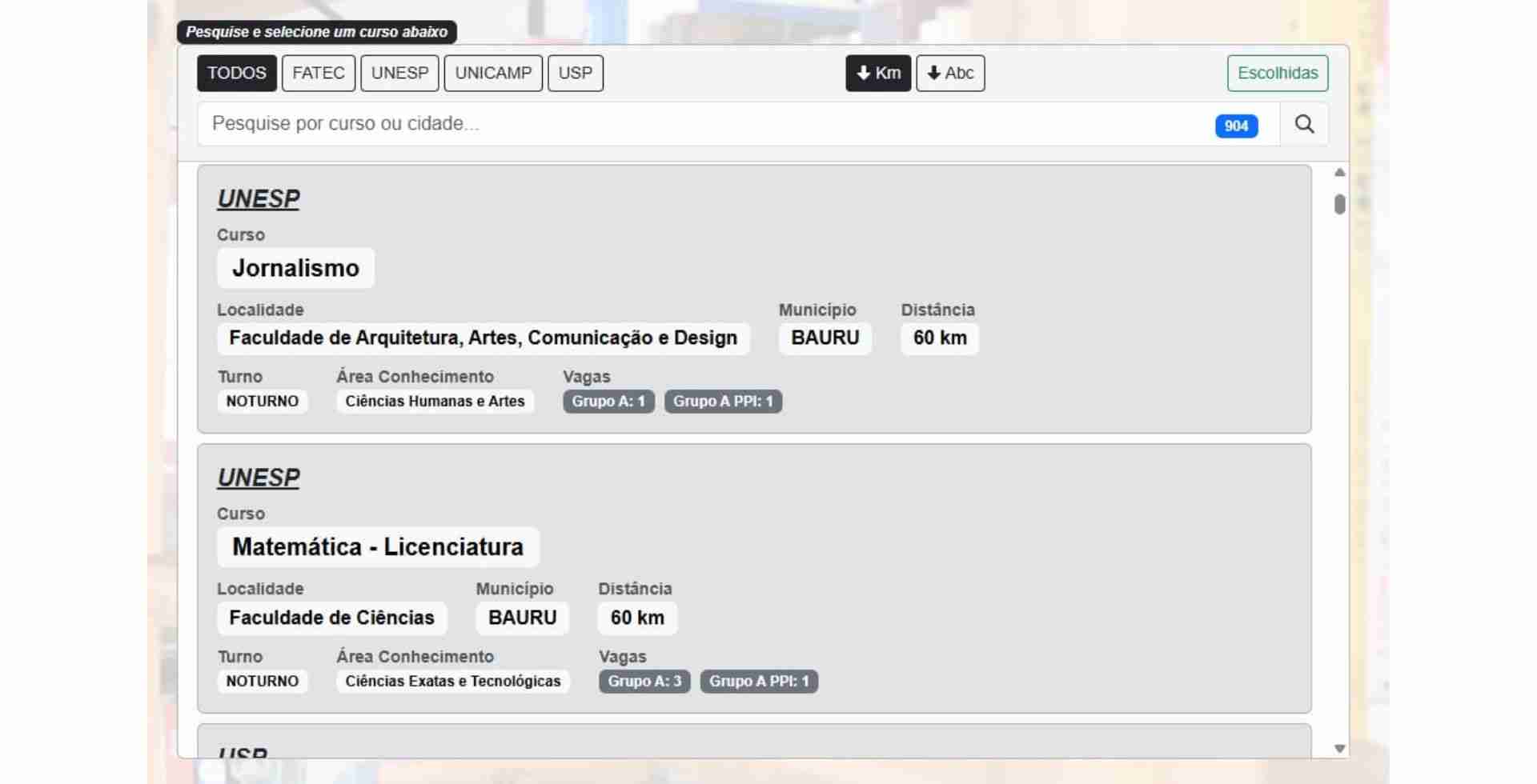 A escolha de cursos deve ser feita no portal do Provão Paulista Seriado, no https://provaopaulistaseriado.vunesp.com.br/.