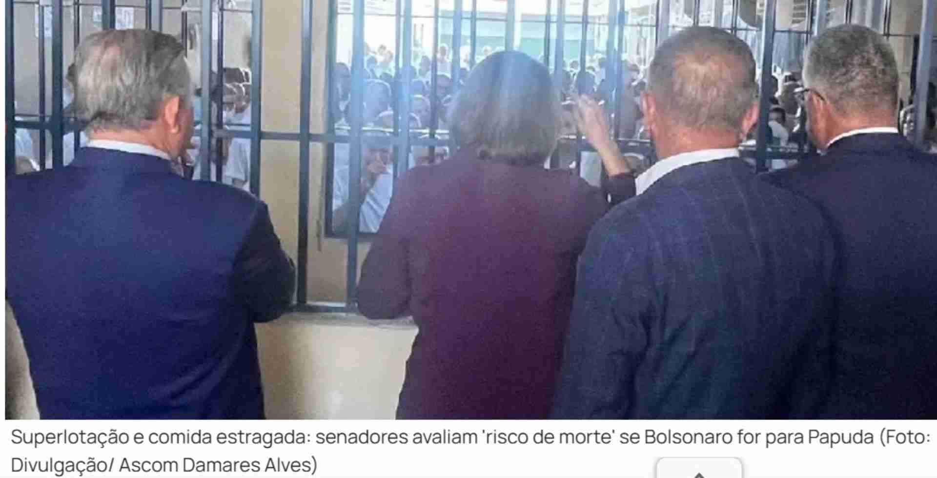 Senadores bolsonaristas alertam para superlotação, saúde precária e comida estragada na Papuda, problemas que podem levar a morte o ex-presidente se lá for encarcerado.