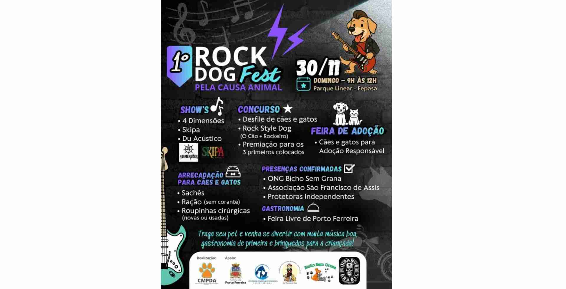 O Conselho Municipal de Proteção e Defesa Animal de Porto Ferreira, com apoio da Prefeitura, Insanos Moto Clube, Centro de Controle de Zoonoses, Associação São Francisco de Assis e Ong Bicho Sem Grana, realizará o 1º Rock Dog Fest, pela causa animal do município.