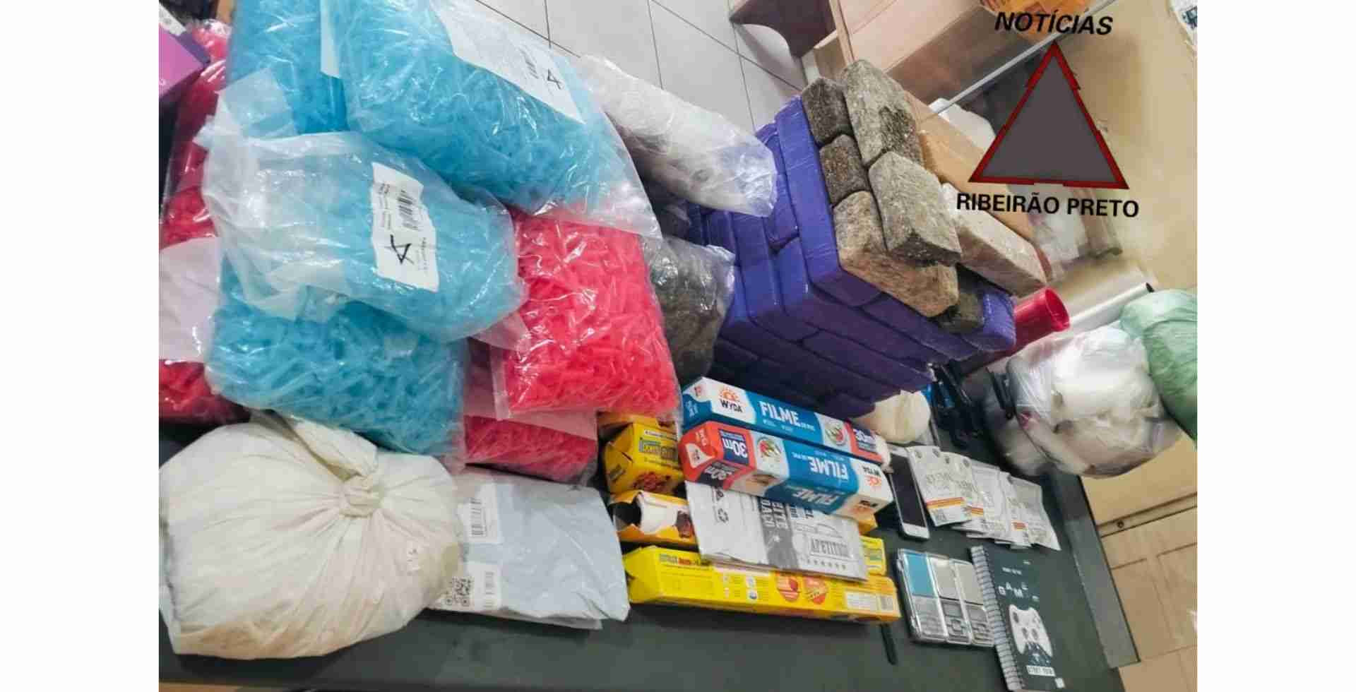 No interior da casa, os PMs localizaram uma grande quantidade de materiais ilícitos, entre eles: