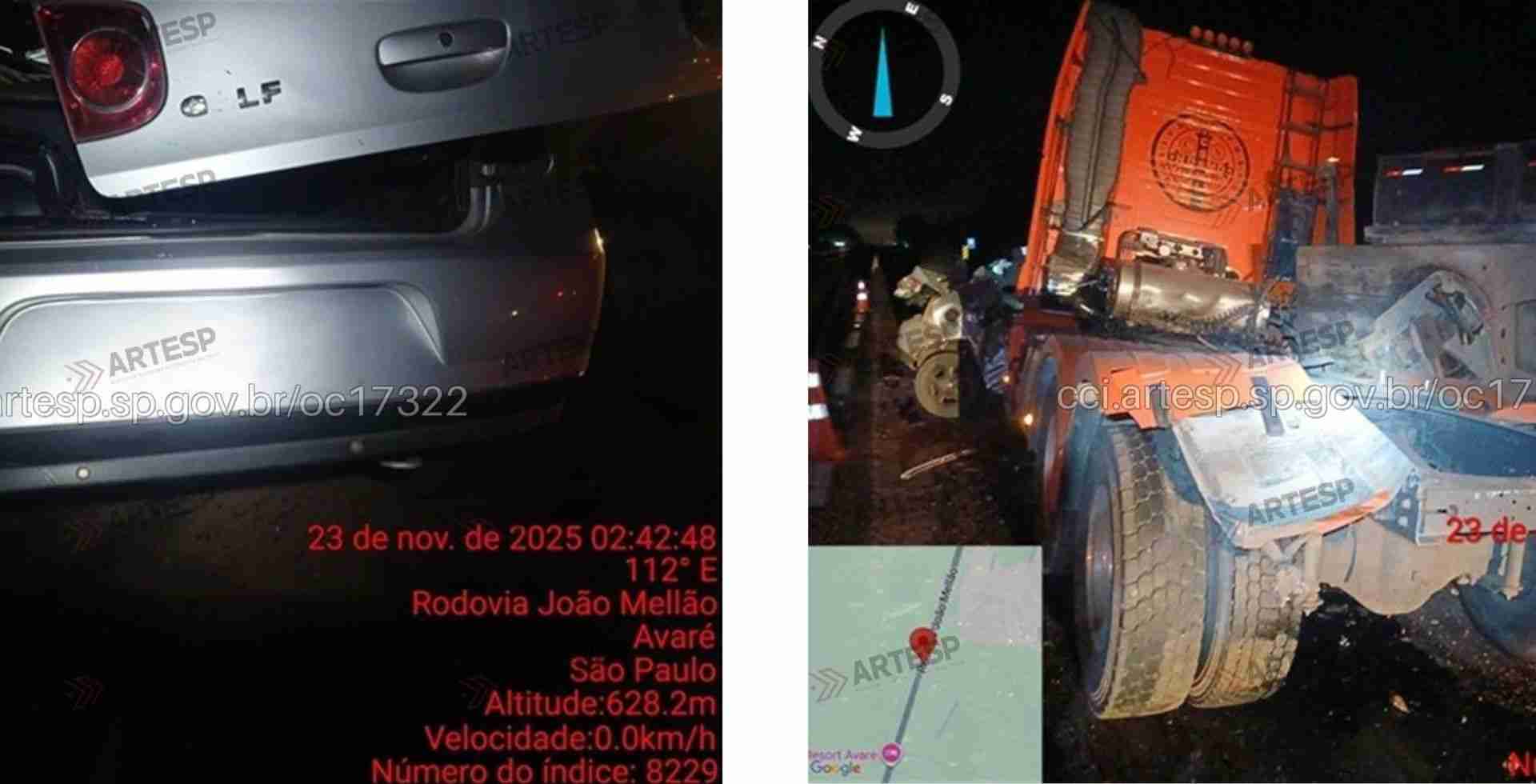 Duas pessoas morreram em uma colisão frontal entre um carro e um caminhão na Rodovia João Mellão (SP-255), em Avaré, na madrugada deste domingo (23). O acidente ocorreu por volta das 2h, no quilômetro 272 da via.