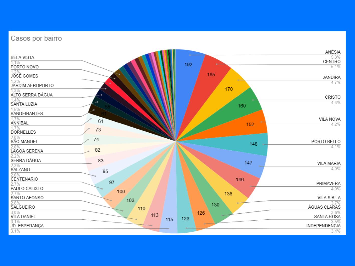 Durante o período de maior transmissão, os bairros que apresentaram a maior concentração de casos foram Jardim Anésia, Centro, Jardim Jandyra, Cristo Redentor e Vila Nova. A prefeitura destaca que estas regiões, em particular, precisam de atenção constante na eliminação de recipientes que possam acumular água parada.