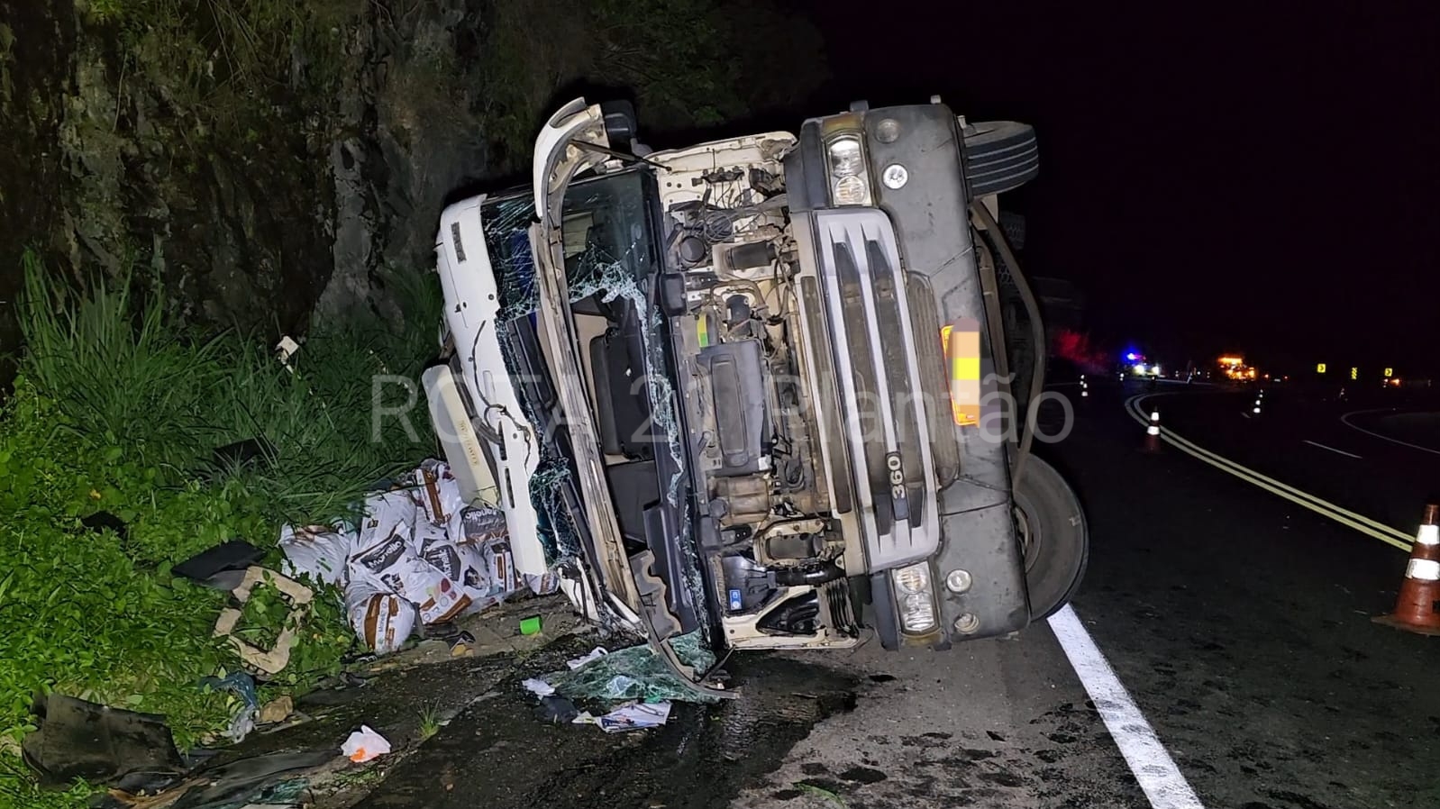 Um caminhão tombou na tarde desta quarta-feira (26) na Rodovia Dr. Adhemar Pereira de Barros (SP-342), no trecho entre Águas da Prata e o Marco Divisório. O veículo transportava ração canina e perdeu o controle em uma curva da serra por volta das 16h58, no km 247, sentido Águas da Prata. Até o momento, as causas do acidente não foram esclarecidas.