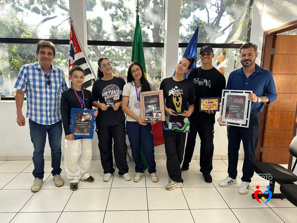 Campeões do ‘breaking’ de Porto Ferreira são homenageados no gabinete
