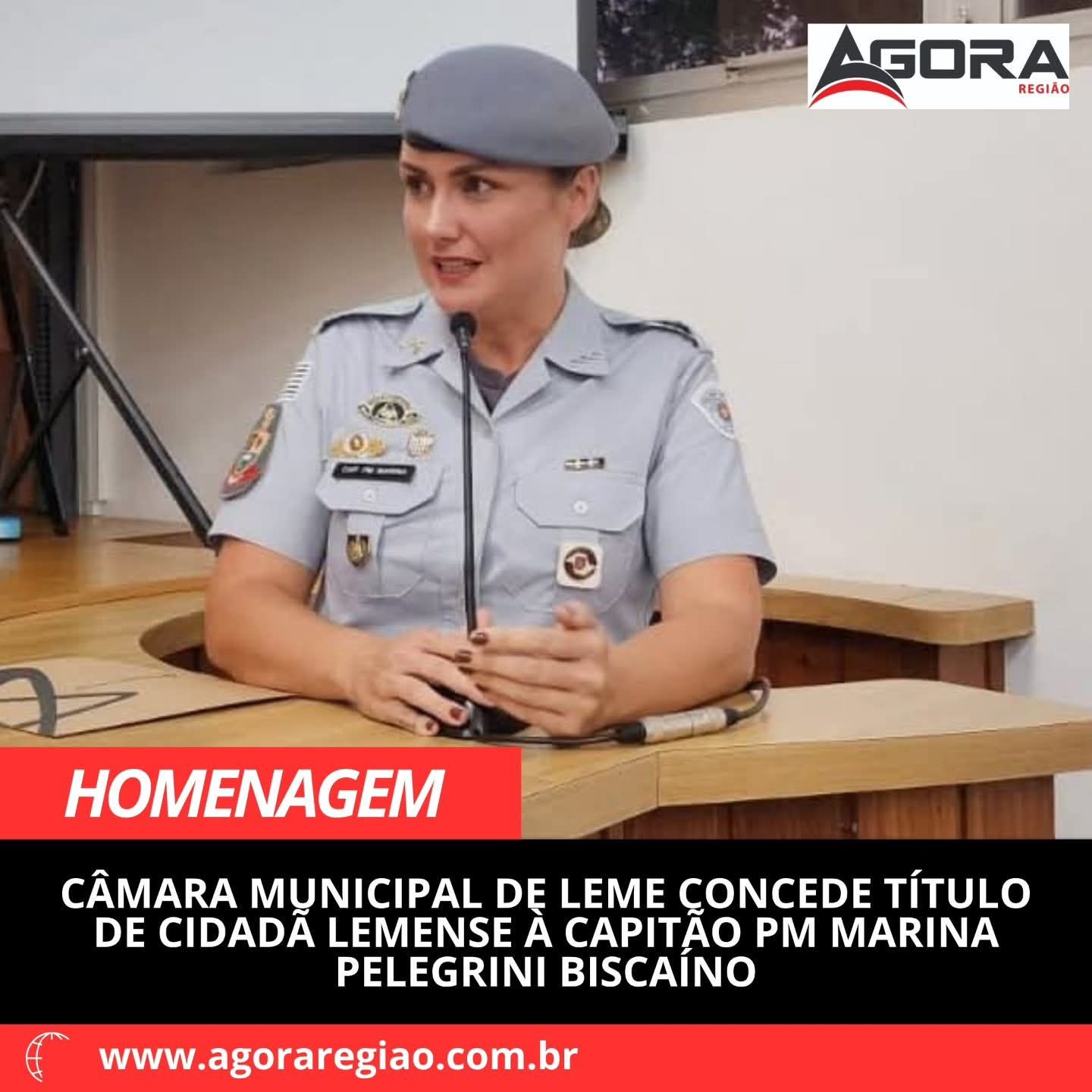 A Câmara Municipal de Leme entregou na noite de terça-feira (18) o Título de Cidadã Lemense à Capitão PM Marina Pelegrini Biscaíno, em reconhecimento à sua dedicação e aos serviços prestados à segurança pública local.