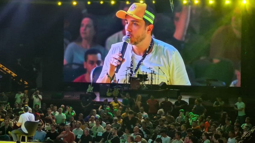 O presidente do MBL, Renan Santos, elevou o tom durante o 1º Festival do MBL, realizado em São Paulo no sábado, 29 de novembro de 2025.