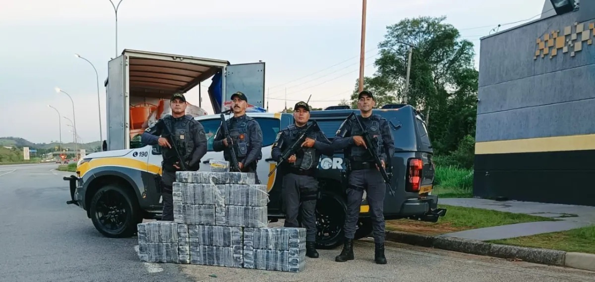 De acordo com a Polícia Militar, uma equipe do TOR (Tático Ostensivo Rodoviário) suspeitou do veículo durante uma fiscalização de rotina. Após vistoria, os policiais localizaram tijolos de cocaína que estavam embalados com plástico verde e fita adesiva preta. O carregamento estava escondido dentro das caçambas.