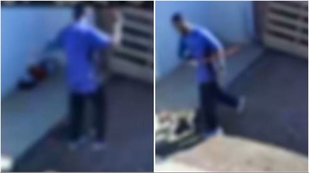 As imagens mostram o cão acuado sobre uma caixa enquanto o homem o atinge diversas vezes com a madeira. Um segundo cachorro, que estava sob a estrutura, foge assustado no momento das agressões. Mesmo quando o animal tenta escapar pulando para o chão, o suspeito continua a desferir golpes.