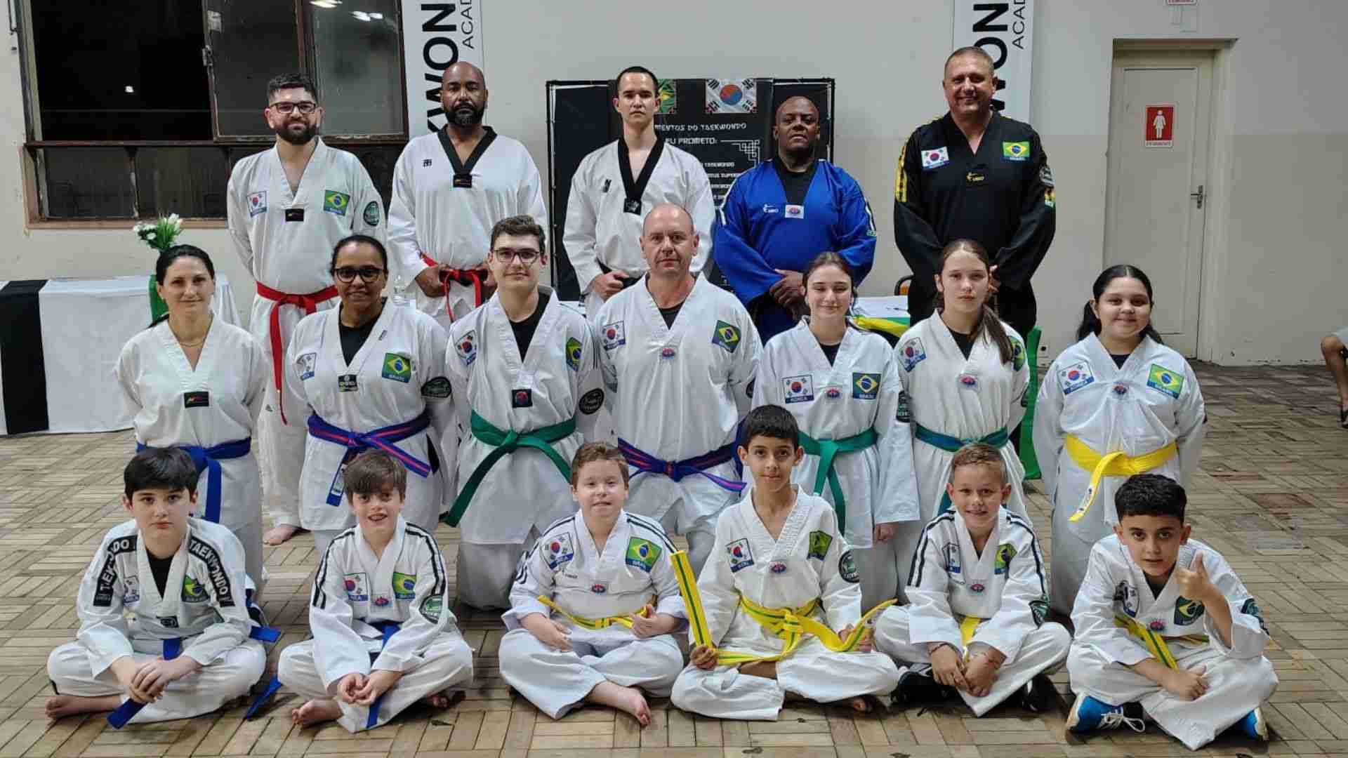 Cerimônia no PFFC contou com banca multidisciplinar e reuniu familiares para celebrar a evolução técnica e valores do taekwondo