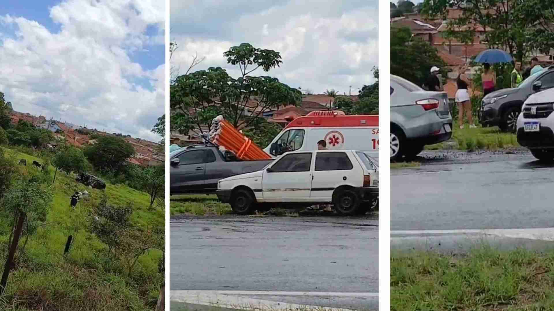 Criança e mais um passageiro ficam gravemente feridos em acidente próximo a Cajuru; motorista perdeu o controle do veículo.