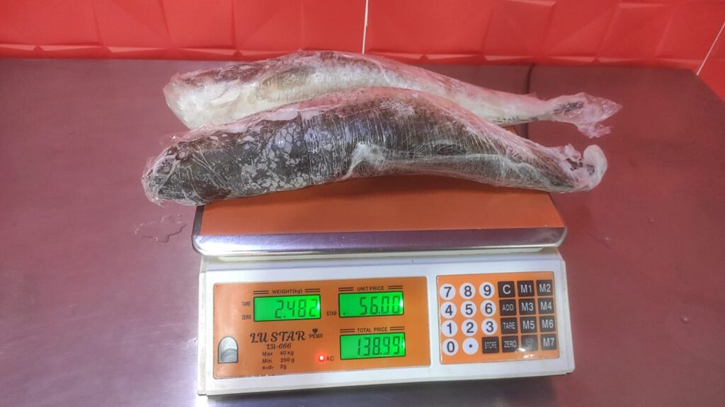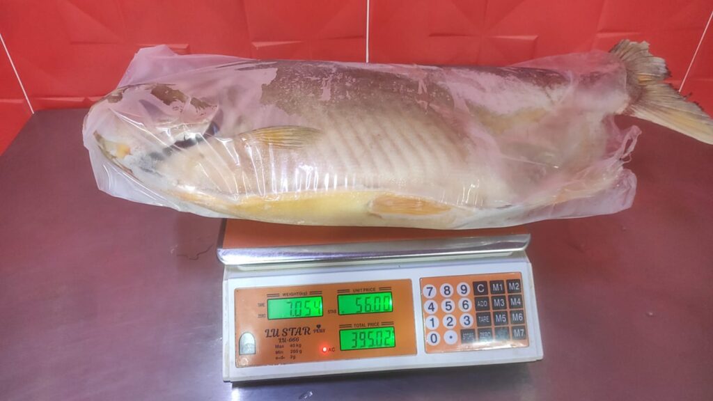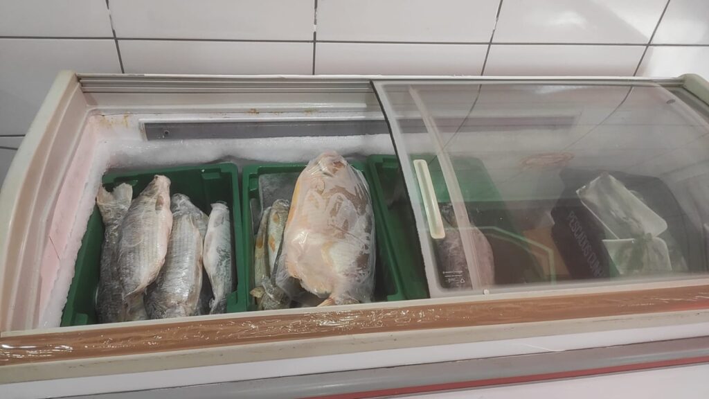 Foram encontrados Curimbatá (12,634 kg), Pacu (7,054 kg), Traíra (2,482 kg), Mandi (8,130 kg) e Piapara (10,454 kg). O estabelecimento não apresentou notas fiscais que comprovassem a origem dos produtos.