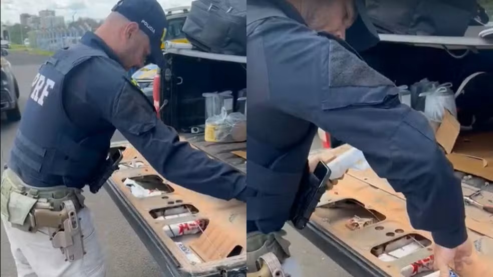 De acordo com os policiais, o material havia sido adquirido de forma ilegal no Paraguai. O fundo falso da picape abrigava 44 ampolas de medicamentos irregulares, entre anabolizantes e substâncias voltadas ao emagrecimento, além dos celulares. A carga foi avaliada em mais de 10 mil dólares.