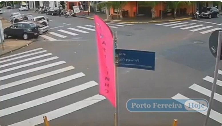 Imagens de uma câmera de segurança mostram os dois veículos chegando praticamente ao mesmo tempo ao cruzamento. Em seguida, ocorre a batida, que ainda terá as causas apuradas. O local conta com sinalização, e a principal suspeita é de que um dos condutores não tenha respeitado a placa de parada obrigatória.