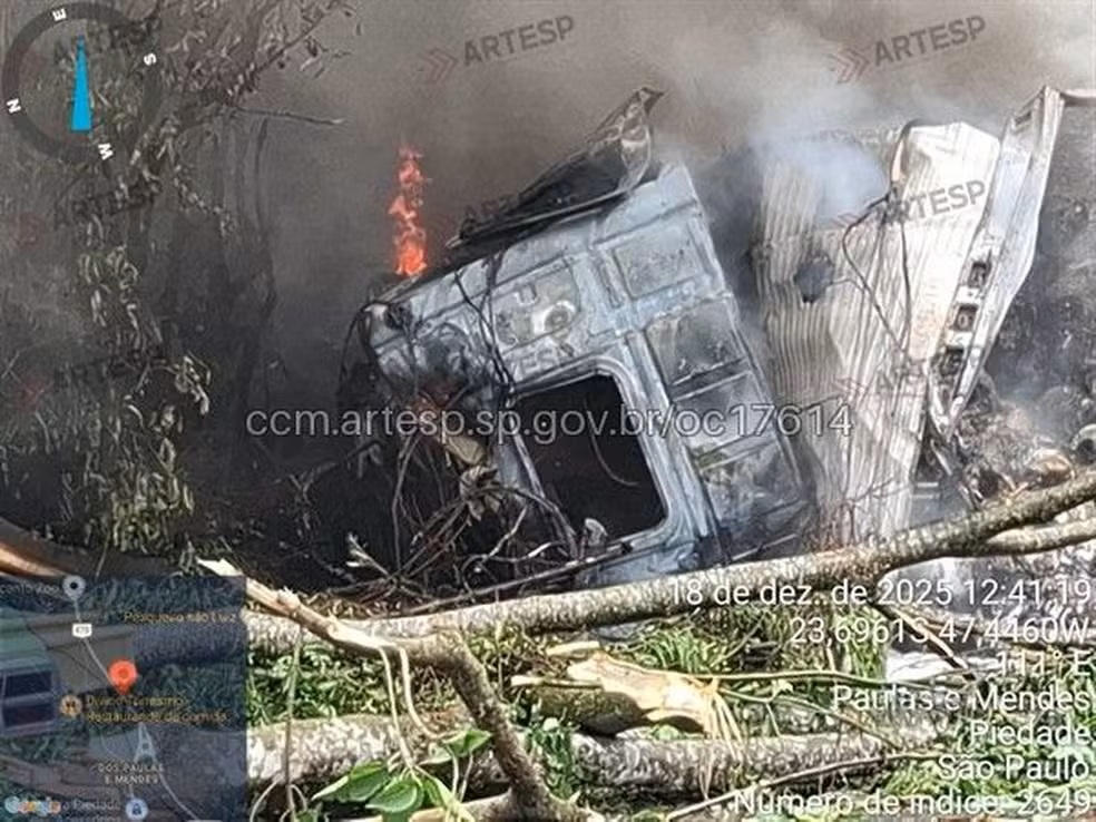 De acordo com o Centro de Controle Operacional da Sorocabana, a batida frontal aconteceu por volta das 12h18, no km 115, no sentido norte da via. Com a força do impacto, o caminhão tombou e pegou fogo, exigindo rápida atuação das equipes de emergência.