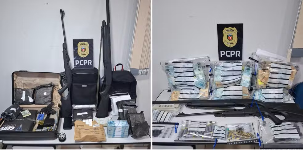Além dos valores, a polícia apreendeu diversos outros itens no local, entre eles uma pistola calibre 9 mm, uma carabina calibre .22, uma espingarda calibre 12, munições de diferentes calibres, 203 folhas de cheque, contratos e notas promissórias. Também foram encontrados US$ 293 em espécie.