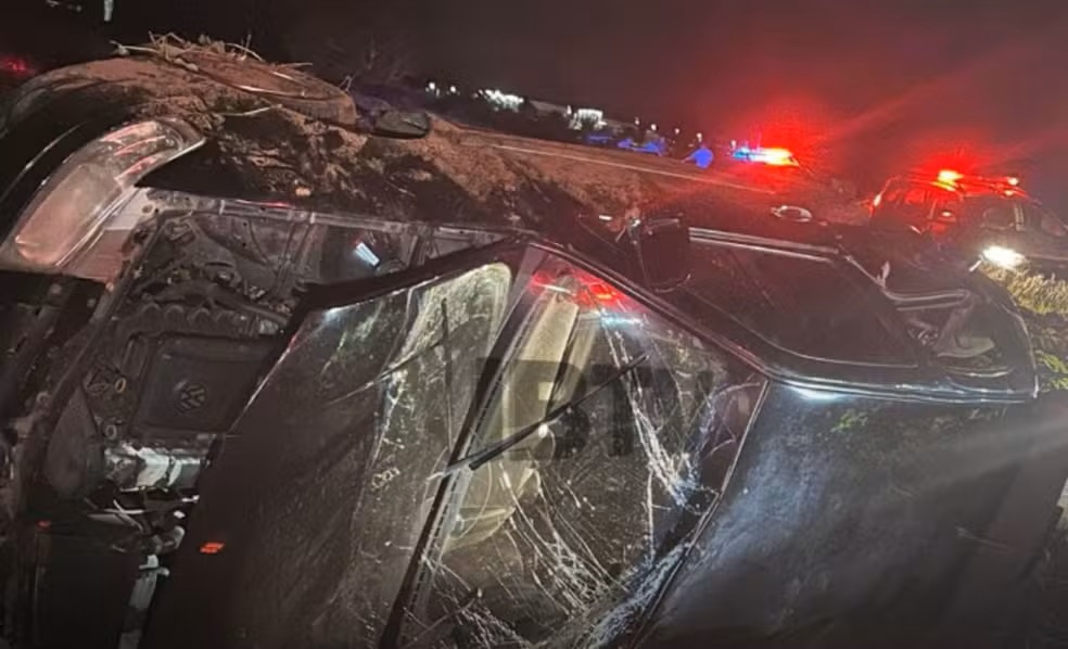 Ainda de acordo com os bombeiros, o carro atingiu uma placa de sinalização antes de capotar. Com o impacto, o motorista ficou preso às ferragens, sendo necessário cortar parte da estrutura do veículo para realizar o resgate.