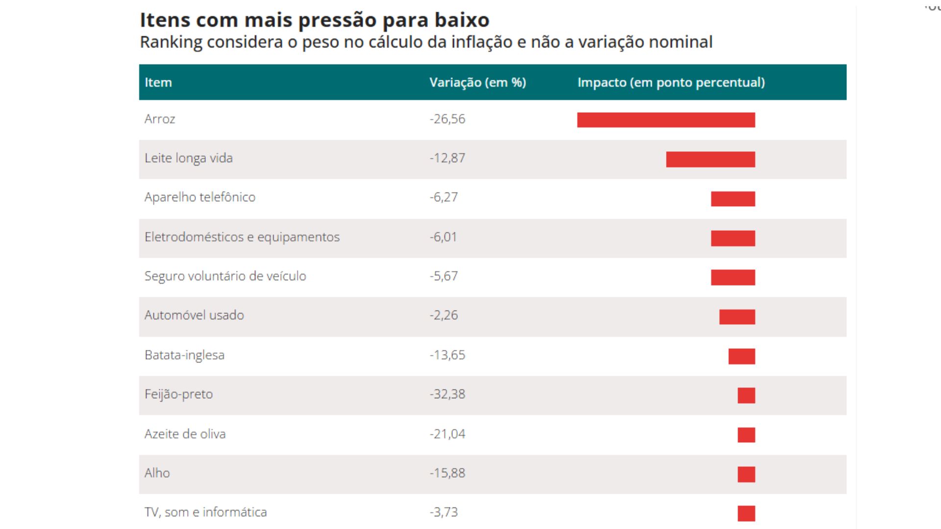 - Energia Elétrica: foi a principal pressão de alta na inflação, com um aumento de 12,31% no ano. Esse salto ocorreu devido aos reajustes de tarifas e à maior presença das bandeiras amarela e vermelha nas contas de luz.