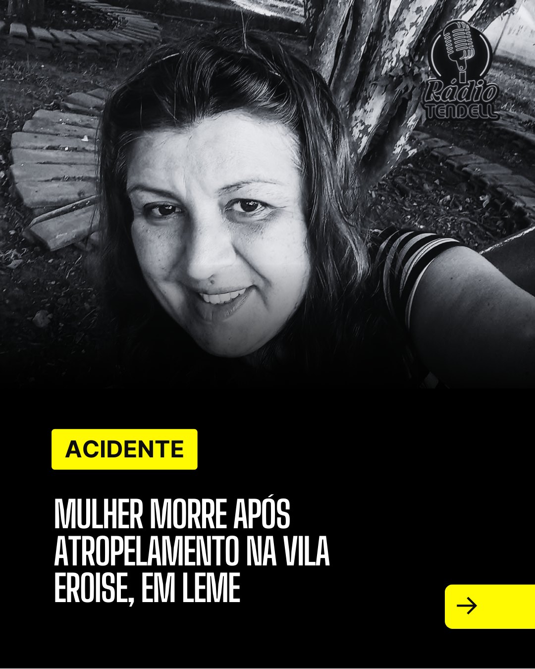 Uma mulher de 45 anos morreu após ser atropelada no fim da tarde desta segunda-feira, 12 de janeiro de 2026, na Vila Eroise, em Leme. A vítima foi identificada como Cristiane Savassi.