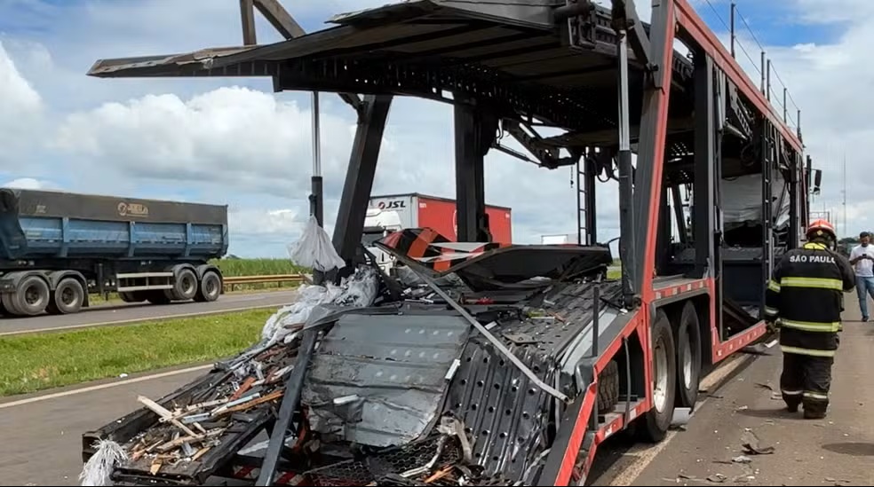 Um engavetamento envolvendo quatro veículos de carga provocou a interdição total da Rodovia Fausto Santomauro (SP-127) na manhã desta quinta-feira (15), em Piracicaba (SP). O acidente deixou pelo menos três pessoas feridas, sendo uma em estado grave.