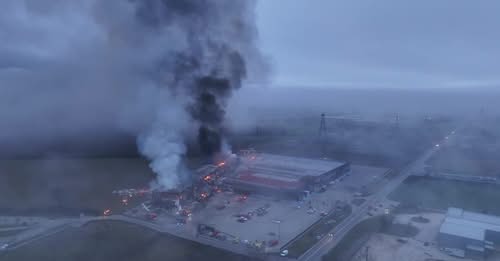 Uma coluna de fumaça preta e densa podia ser vista a quilômetros de distância enquanto cerca de 40 bombeiros, com apoio de 13 caminhões, atuavam para conter o avanço do incêndio. As chamas chegaram a atingir o telhado do complexo industrial, indicando a intensidade do fogo.