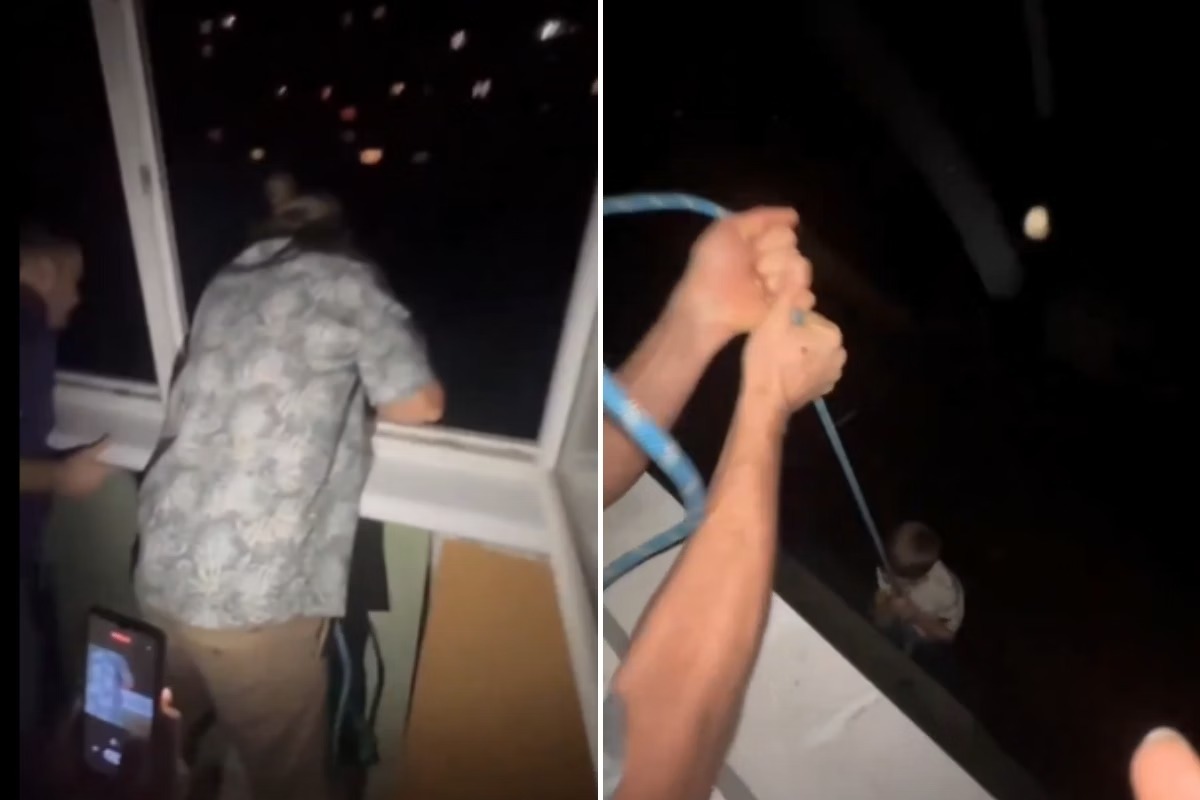 As imagens mostram o menino sendo colocado para fora da janela do sétimo andar, a cerca de 24 metros do chão. Preso apenas por uma corda, ele foi baixado por aproximadamente 7,5 metros enquanto implorava por ajuda e pedia para o pai segurá-lo. Durante a ação, o homem teria respondido apenas para que a criança se mantivesse agarrada à corda.