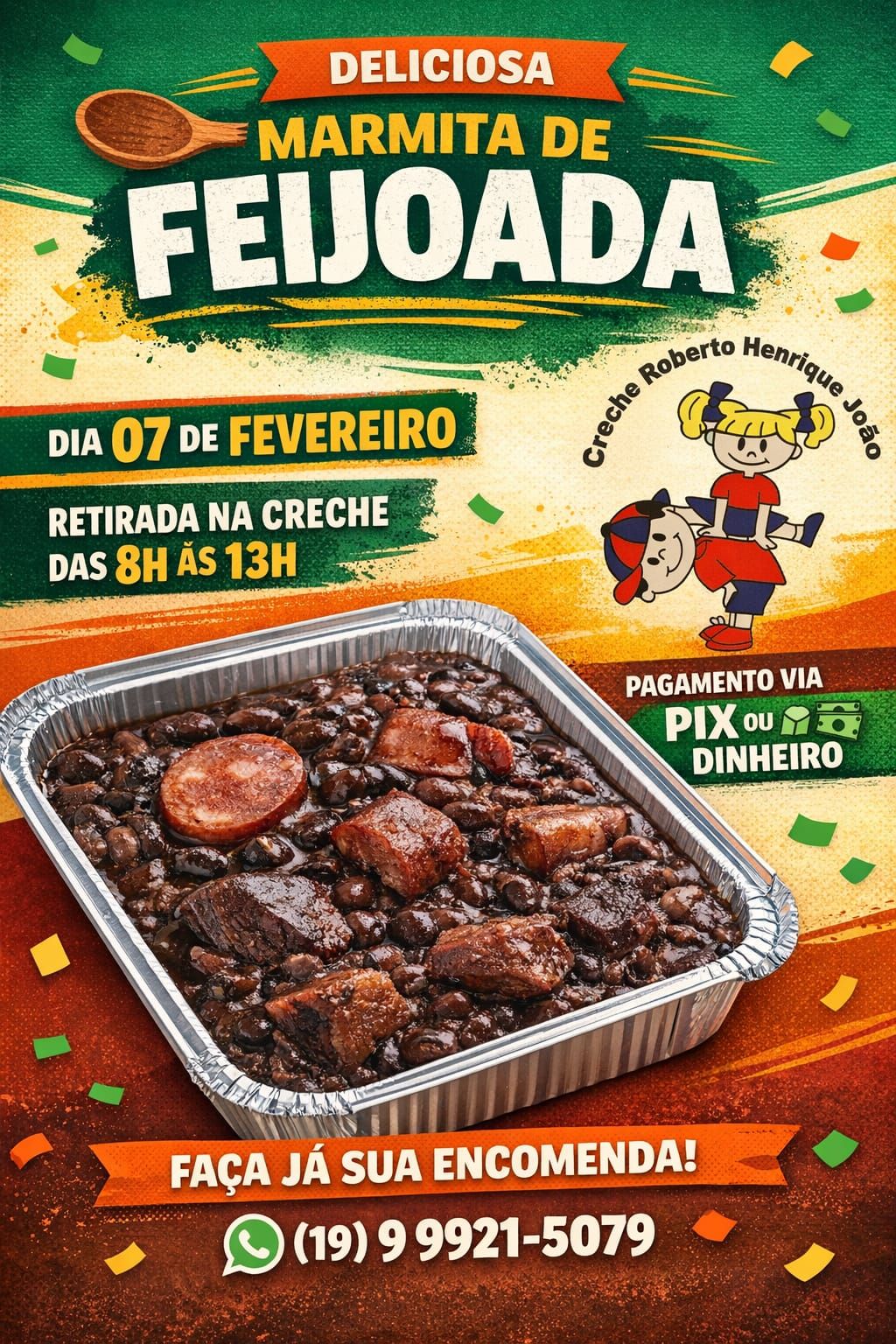 Uma feijoada solidária será realizada em Porto Ferreira no dia 7 de fevereiro com o objetivo de arrecadar recursos para a Creche Roberto Henrique João. A ação busca mobilizar a comunidade em torno de um gesto de cuidado e solidariedade, contribuindo diretamente para o bem-estar das crianças atendidas pela instituição.