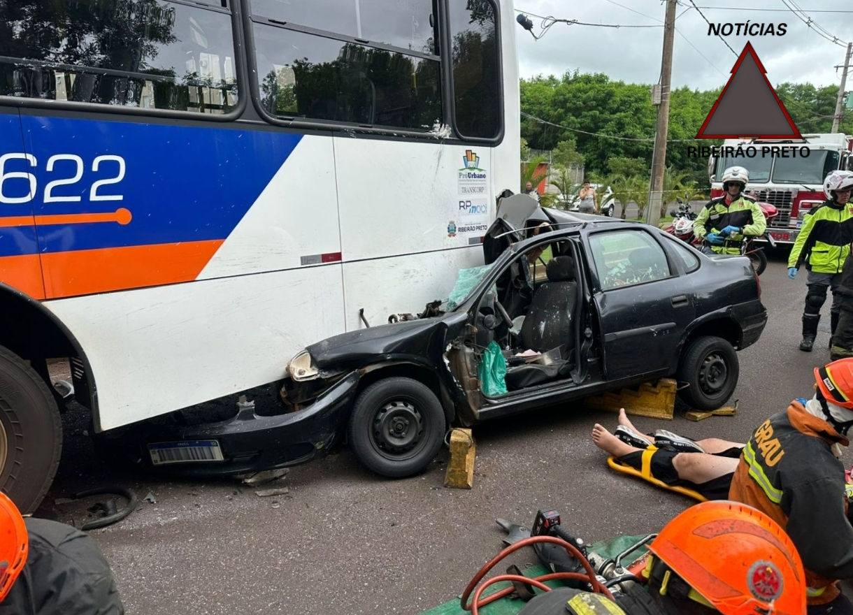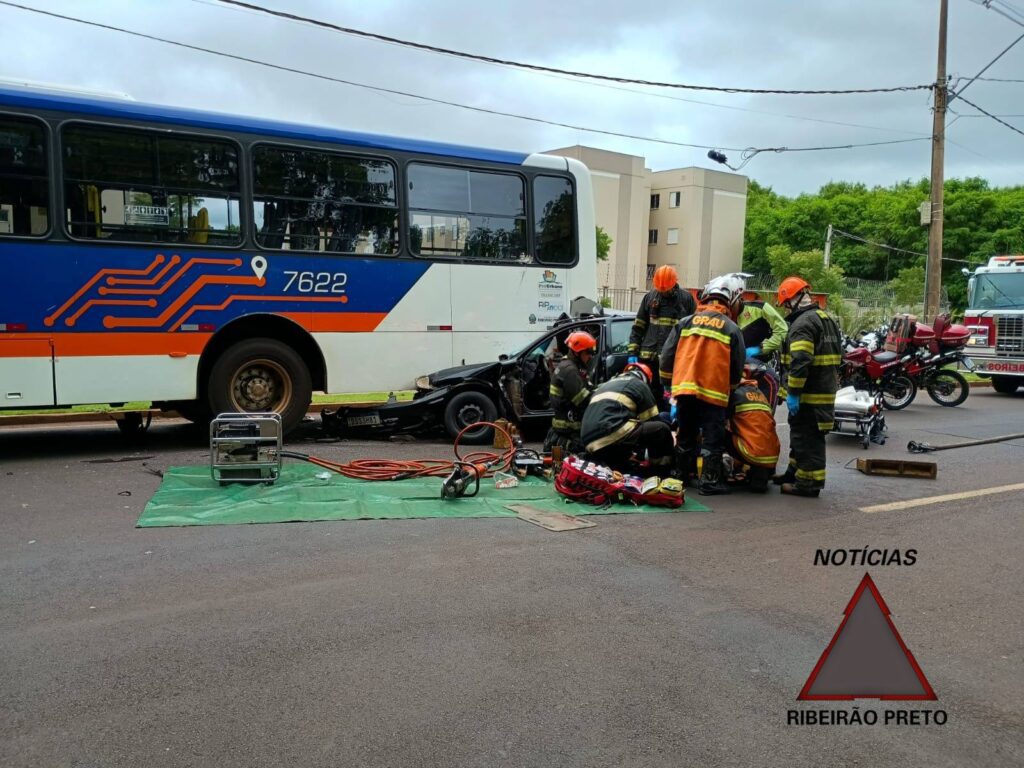 Um motorista de 37 anos ficou ferido no fim da manhã desta quarta-feira (4) após se envolver em um acidente entre um carro e um ônibus do transporte coletivo urbano de Ribeirão Preto. A colisão ocorreu na avenida Governador Mário Covas, a Via Norte, no sentido bairro–Centro, na região do Ipiranga, zona Norte da cidade.