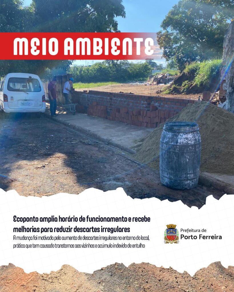 A Secretaria de Meio Ambiente e Zeladoria de Porto Ferreira anunciou a ampliação do horário de atendimento do Ecoponto. A medida tem como objetivo reduzir o descarte irregular de resíduos, que vinha causando transtornos aos moradores próximos ao local.