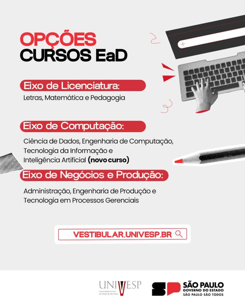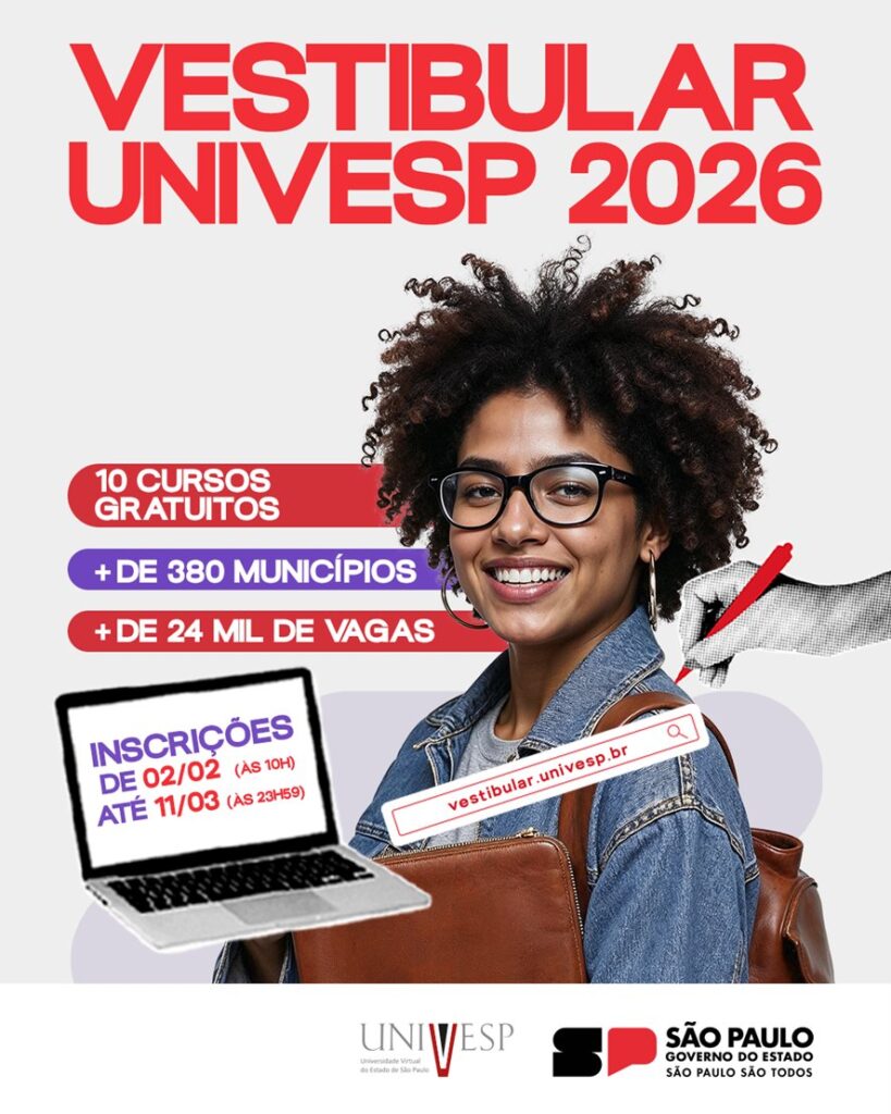 A Univesp reforça que o vestibular é uma oportunidade de acesso ao ensino superior público e gratuito, ampliando as opções de formação acadêmica para a população da região.