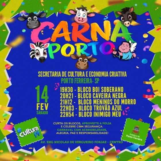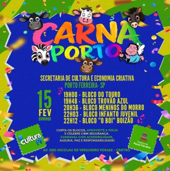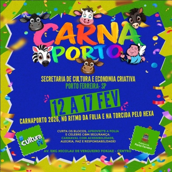 O Carnaval de Porto Ferreira começa nesta quinta-feira, 12 de fevereiro, com a abertura oficial do CarnaPorto 2026. A folia acontece na avenida Engenheiro Nicolau de Vergueiro Forjaz, no Centro, e segue até a terça-feira, reunindo blocos tradicionais que mantêm viva a cultura carnavalesca do município.