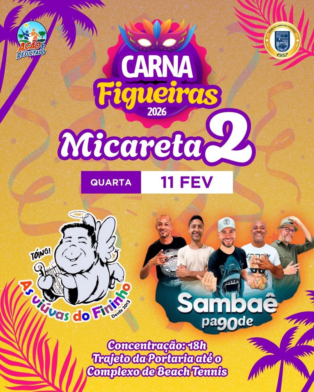 A Micareta 2 acontece na quarta-feira, dia 11 de fevereiro, com concentração marcada para as 18h. A expectativa é de mais uma grande celebração, reforçando o espírito do CarnaFigueiras 2026 e mostrando que, quando a festa agrada, ela merece mesmo ser repetida.