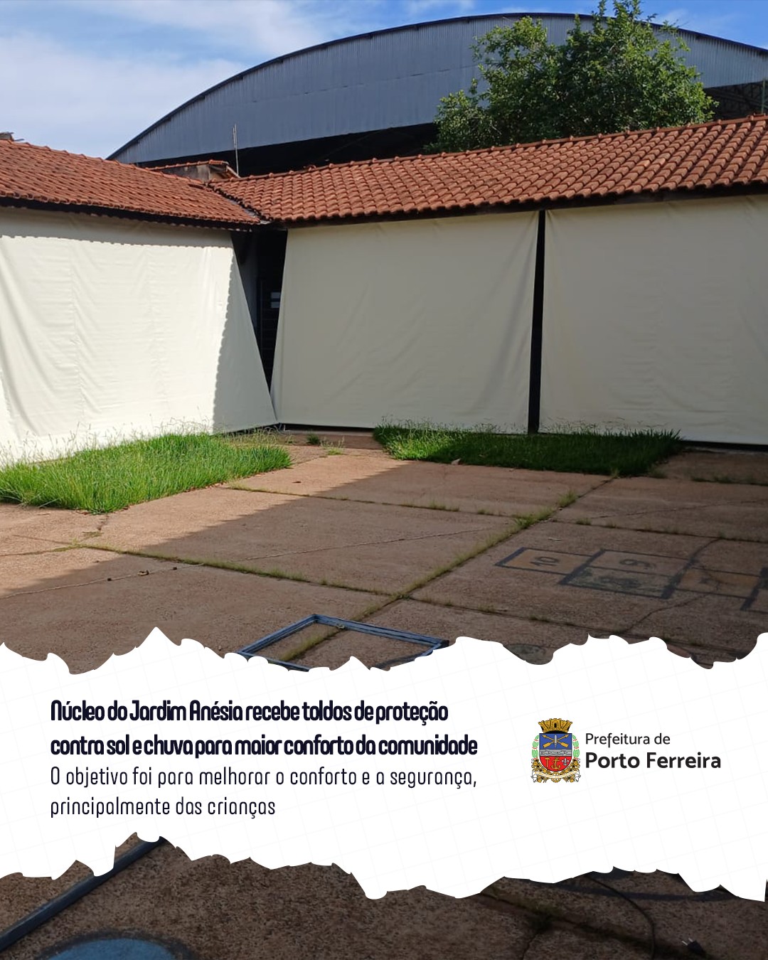 O Núcleo Municipal de Educação Infantil do Jardim Anésia, em Porto Ferreira, passou a contar com toldos de proteção contra sol e chuva, trazendo mais conforto, segurança e bem-estar para a comunidade escolar, especialmente para as crianças.