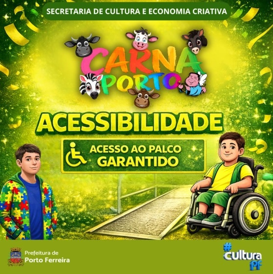 A Prefeitura de Porto Ferreira, por meio da Secretaria de Cultura e Economia Criativa, anunciou que o CarnaPorto 2026 contará com estrutura especialmente planejada para garantir acessibilidade a pessoas com deficiência e ao público autista.