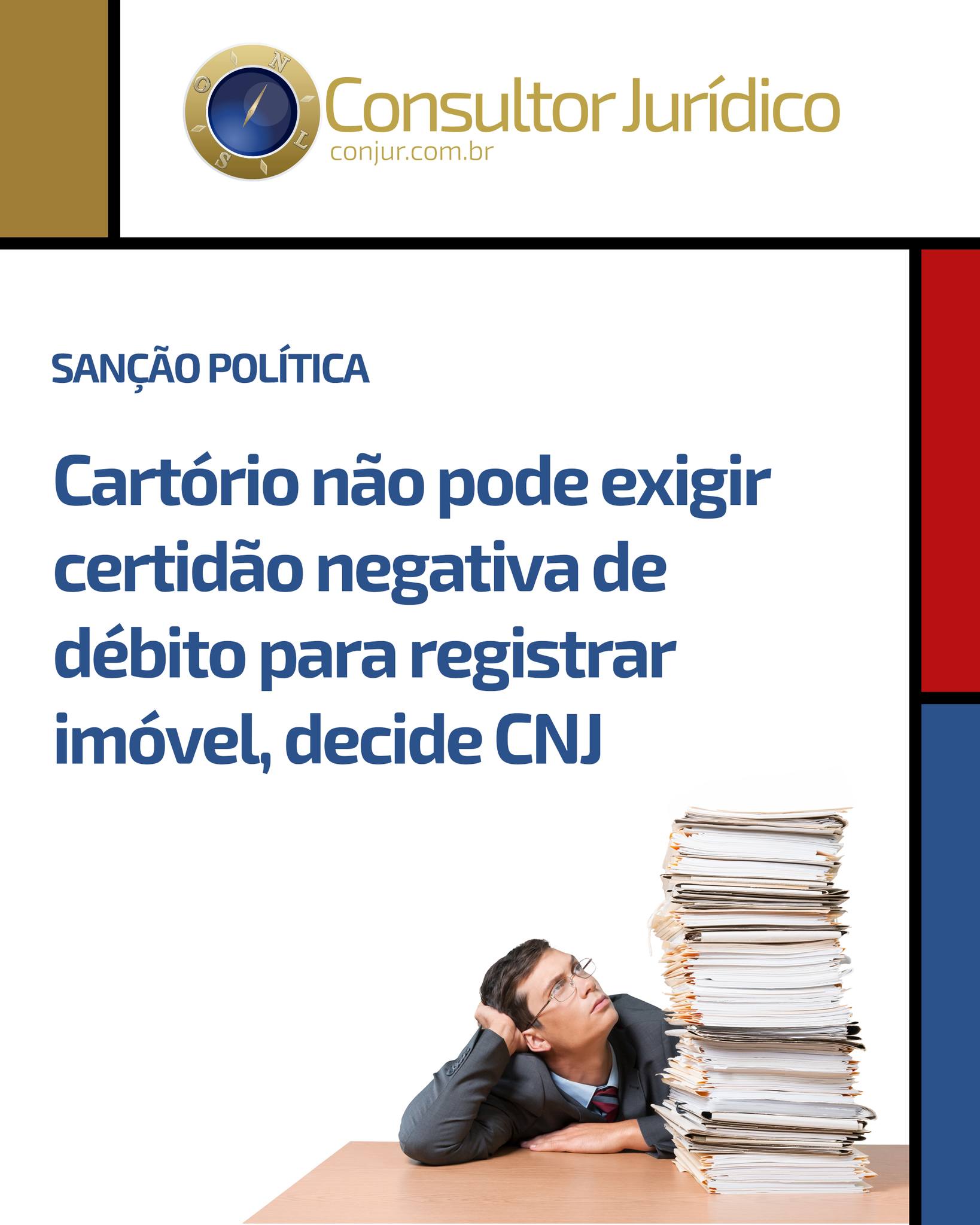 O Conselho Nacional de Justiça decidiu que cartórios não podem exigir Certidão Negativa de Débitos (CND) para registrar a transferência de imóveis. Para o órgão, condicionar o ato à quitação de tributos caracteriza sanção política e meio indireto de cobrança fiscal.