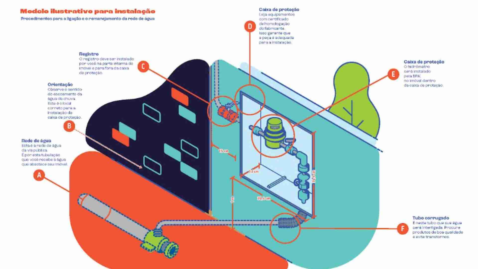 A concessionária orienta que a caixa de proteção do hidrômetro deve seguir alguns critérios obrigatórios: