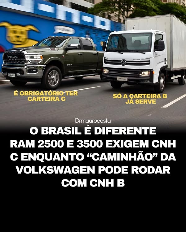 É o caso das picapes Ram 2500 e Ram 3500. Embora sejam vendidas como picapes e muitas vezes utilizadas para transporte particular, esses modelos possuem Peso Bruto Total superior a 3.500 quilos. Por essa razão, são enquadrados tecnicamente como veículos de carga pesada, o que exige habilitação na categoria C, independentemente da finalidade de uso pelo proprietário.