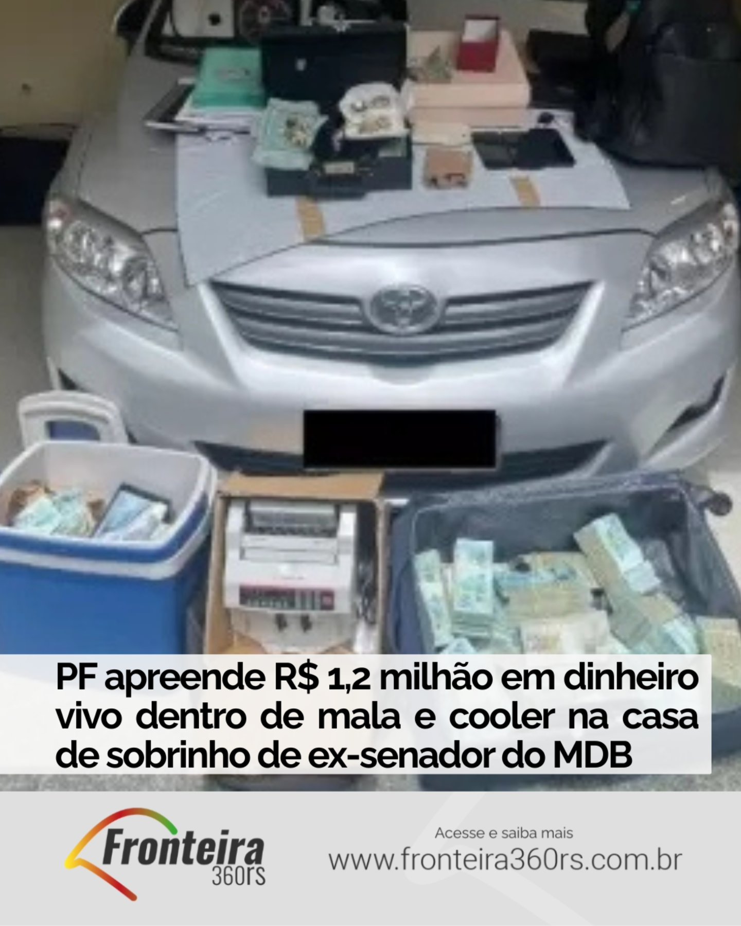 A Polícia Federal apreendeu cerca de R$ 1,2 milhão em dinheiro vivo durante o cumprimento de mandados da Operação Vassalos, que apura suspeitas de desvio de recursos provenientes de emendas parlamentares. A quantia foi localizada em uma mala e em um cooler guardados dentro de um veículo blindado estacionado na residência de Carlos Alberto Coelho Oliveira Neto, sobrinho do ex-senador Fernando Bezerra Coelho, do MDB.